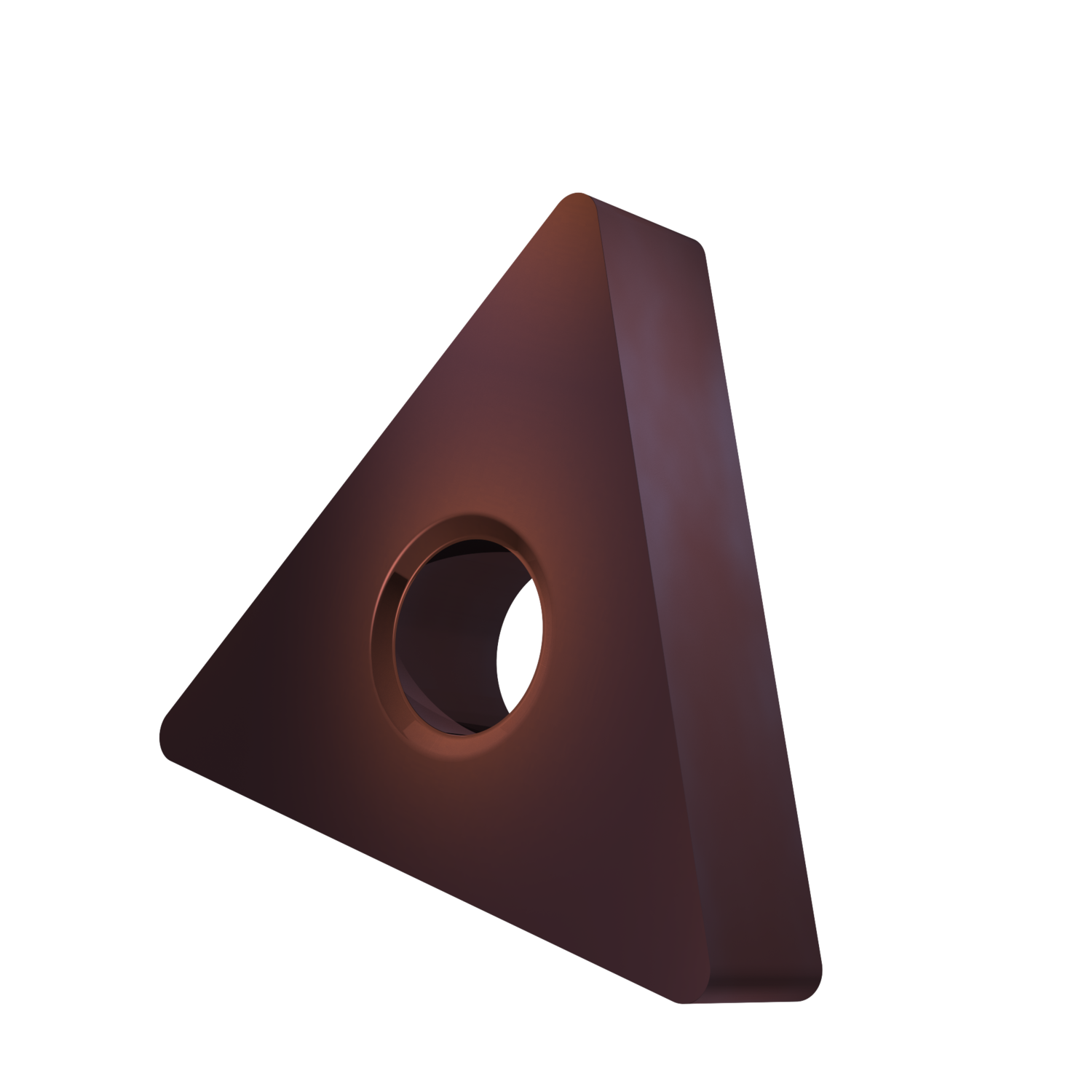 Plaquita de torneado negativa, de doble cara, triangular con diámetro del círculo inscrito de 0.5 inch, 0.187 inch de espesor, radio de punta de 0.031 inch, precisión de montaje con tolerancia según ISO clase M en calidad T8415.