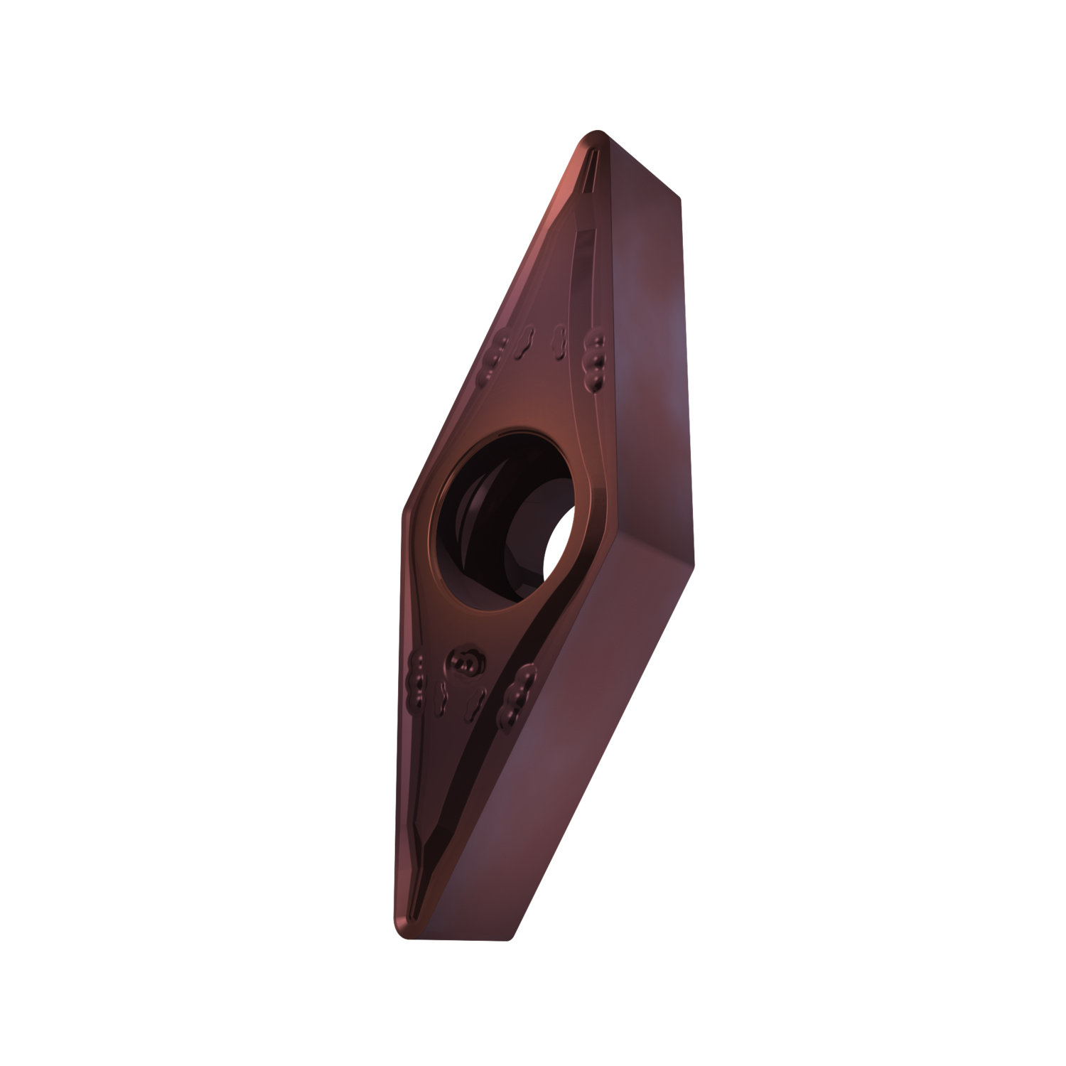 Plaquita de torneado positiva, de una sola cara, rómbica de 35° con 5° de incidencia, diámetro del círculo inscrito de 0.375 inch, 0.187 inch de espesor, 0.031 inch radio de punta de precisión de montaje con tolerancia según ISO clase M, rompevirutas FM con preparación del filo filos de corte redondeados en calidad T8415.
