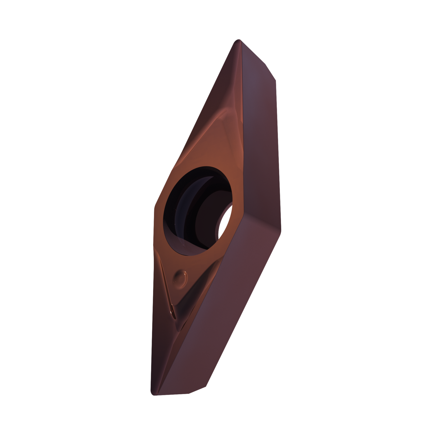 Plaquita de torneado positiva, de una sola cara, rómbica de 35° con 7° de incidencia, diámetro del círculo inscrito de 0.156 inch, 0.094 inch de espesor, radio de punta de 0.008 inch, precisión de montaje con tolerancia según ISO clase G, rompevirutas SF3 con preparación del filo filos de corte redondeados en calidad T8415.