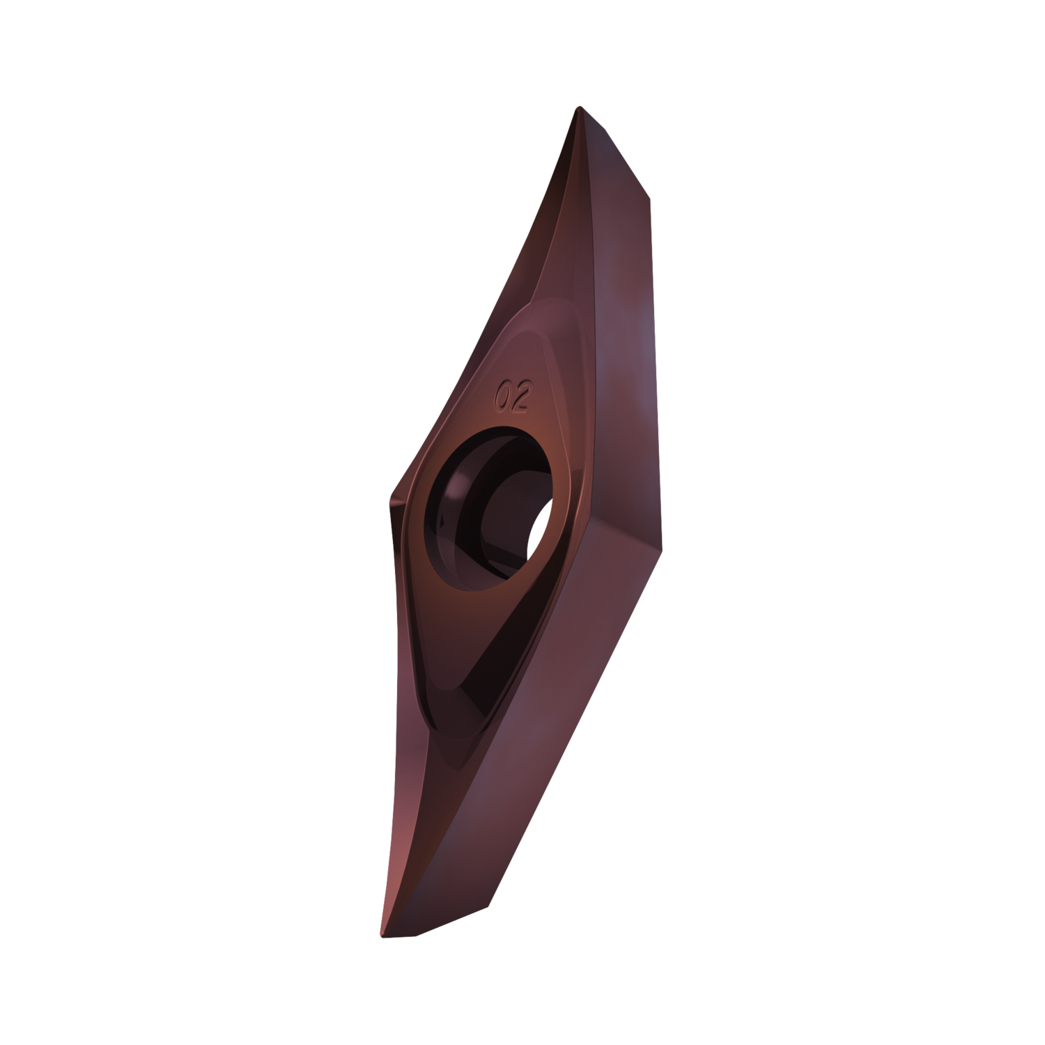 Plaquita de torneado positiva, de una sola cara, rómbica de 35° con 7° de incidencia, diámetro del círculo inscrito de 0.375 inch, 0.187 inch de espesor, radio de punta de 0.008 inch, precisión de montaje con tolerancia según ISO clase G, rompevirutas SF3 con preparación del filo filos de corte redondeados en calidad T8415.