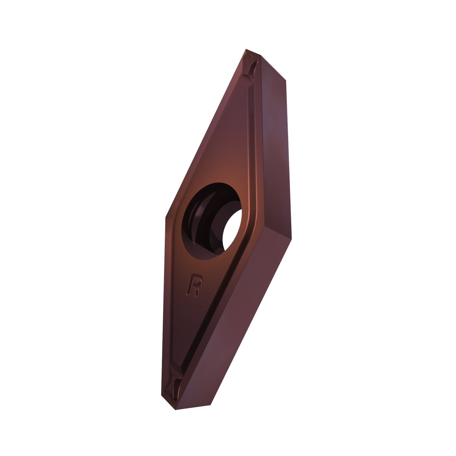 Plaquita de torneado positiva, Diseño especial, rómbica de 35° con 7° de incidencia, diámetro del círculo inscrito de 0.313 inch, 0.125 inch de espesor, radio de punta de, precisión de montaje con tolerancia según ISO clase G, rompevirutas FF2 con preparación del filo filos de corte vivos en calidad T8415.