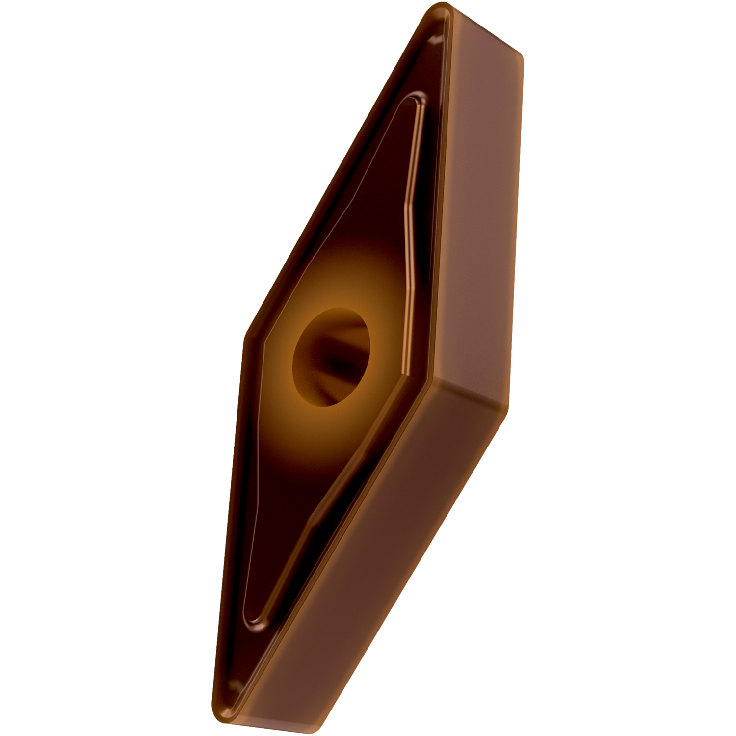 Plaquita de torneado negativa, de doble cara, rómbica de 35° con diámetro del círculo inscrito de 0.375 inch, 0.187 inch de espesor, 0.016 inch radio de punta de precisión de montaje con tolerancia según ISO clase M, rompevirutas NM con preparación del filo filos de corte redondeados en calidad T8415.